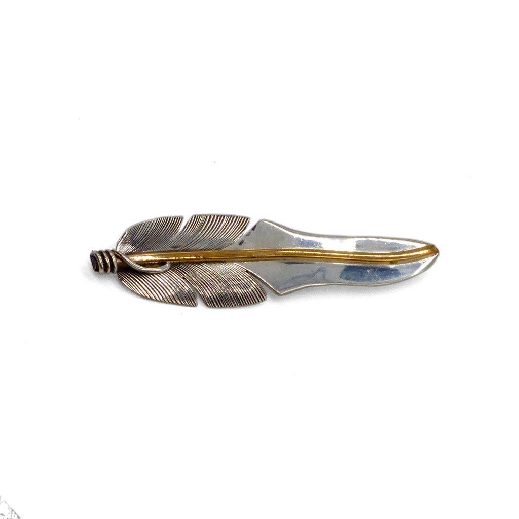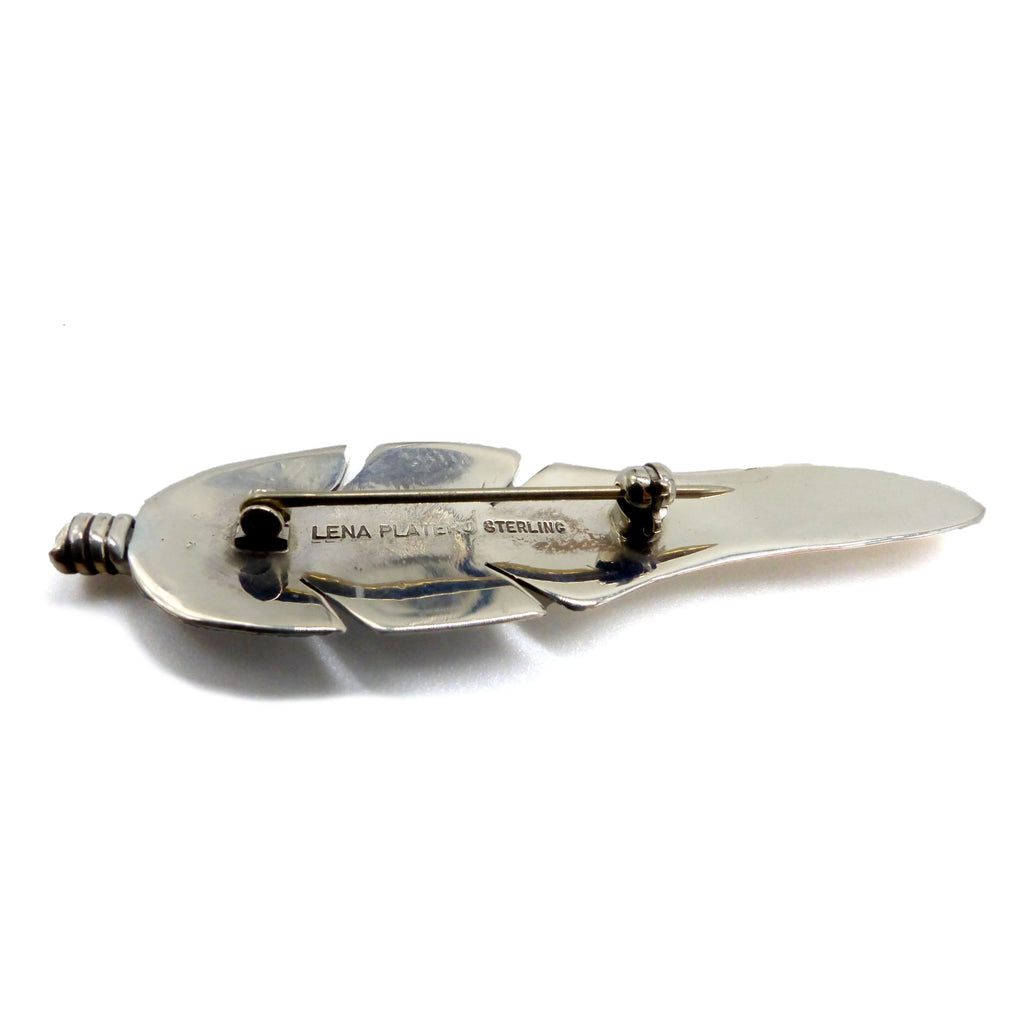 Sterling Silver feather pin by Navajo Silver smith Lena Platero. Features a 12K gold filled quill running the length of the pin.